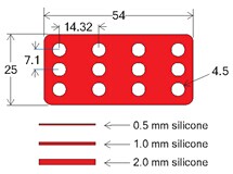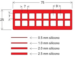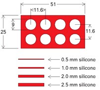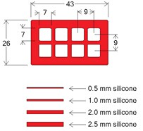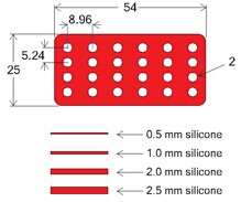 硅膠隔離貼片,又稱硅膠墊密片、試劑壩、硅膠貼封片等。可用于同一芯片上的多樣品反應(yīng),珍貴微量樣品的檢測等等。隔離片可使加樣更準(zhǔn)確,防止樣品間的交叉反應(yīng),且與配套雜交反應(yīng)蓋片合用還可使加樣更容易,反應(yīng)和雜交更均勻,防止反應(yīng)液揮發(fā),避免空氣中灰塵污染,是各種微陣列芯片進行雜交或免疫反應(yīng)的理想輔助工具。該產(chǎn)品可以壓力粘貼,可干凈去除。硅膠屬于惰性材料,對生物樣品無不良影響,如果用來培養(yǎng)敏感性細胞,建議選用新型的無色透明的CultureWell硅膠貼片。