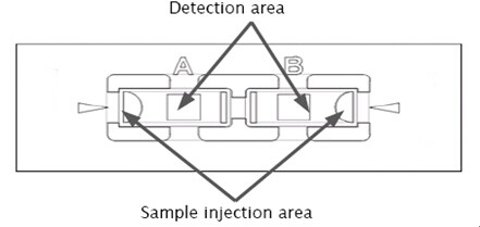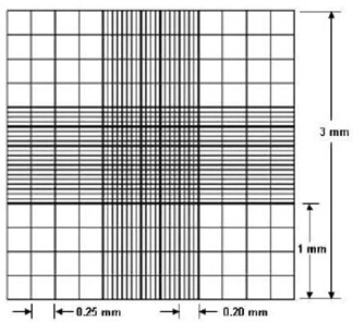 C-Chip (DHC-N01)是用于手工計(jì)數(shù)的一次性塑料血球計(jì)數(shù)板, 不但能精確的控制體積,而且操作簡單。包括兩個(gè)閉合的小室,每個(gè)小室有兩個(gè)樣品進(jìn)出口(圖2)。DHC-N01格柵和改良式紐鮑爾格柵很相似。包括九個(gè)大格,每個(gè)大格為1×1mm ,每格深度為0.1mm。每個(gè)大格總體積為0.1mm3或者10-4cm3(圖1)。正中心的一個(gè)大格經(jīng)過三重分割又被分成25個(gè)小格,四角上的四個(gè)大格分別被分成16個(gè)小格。