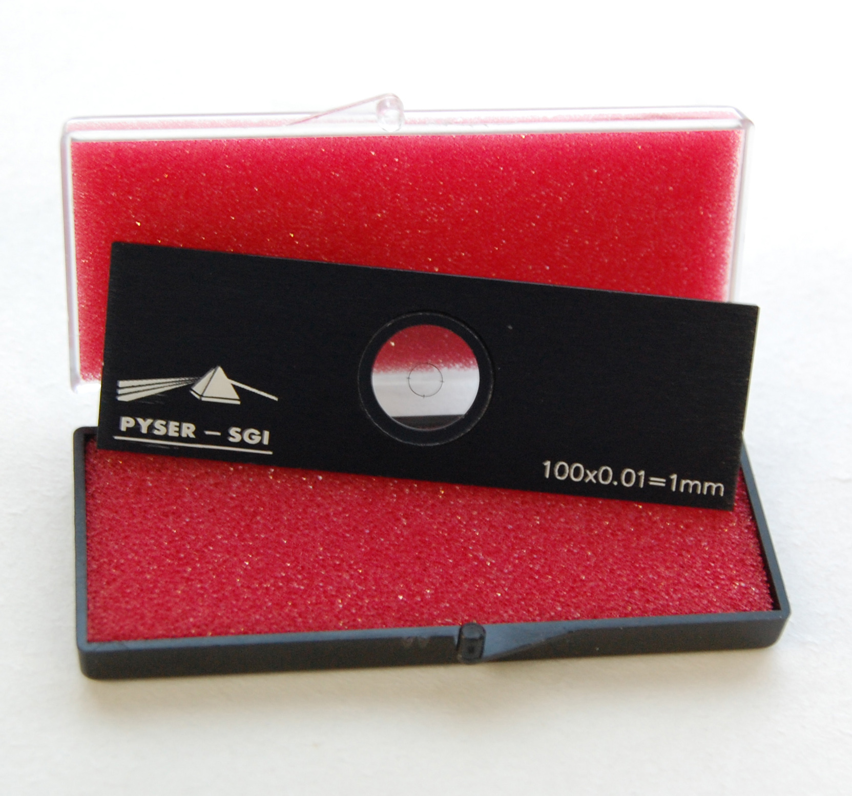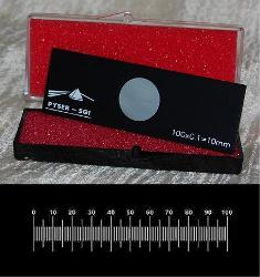 微尺一般是圓形,鑲嵌在一個黑色的陽極氧化鋁膜鍍層的載玻片內(nèi),載玻片尺寸:76mm x 25mm x 1.5mm。