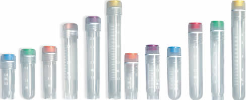 又稱為凍存管,由聚丙烯制造,檢測(cè)認(rèn)定為Rnase-free,Dnase-free,Pyrogen-free,DNA-free。可以用來(lái)裝盛生物學(xué)樣品、人或動(dòng)物的細(xì)胞等,溫度耐受至-196℃。有白色可書寫區(qū),有配套的有顏色管蓋來(lái)區(qū)別不同的樣品。管蓋與管子材質(zhì)相同,具有相同的膨脹系數(shù),冷凍管子均經(jīng)過(guò)伽馬射線消毒。