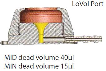 五、LoVol:鈦合金材料,非常低的死區(qū)容積,適用特別珍貴的藥品和收集小量體液,例如CSF INFUSION使用。LoVol port有兩種尺寸:MIN-LoVol(15μl)和MID-LoVol(40μl)配套使用22G 和24G針和輸液套件。通過下圖的比對,可以很快明白LoVol設計的奧妙!
