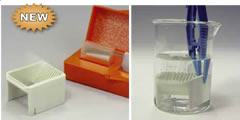 包括Wash-N-Dry蓋玻片架和Wash-N-Dry載玻片架,均可以高壓滅菌,可以透明、處理、染色、干燥一口氣完成。國(guó)際實(shí)驗(yàn)室最新流行款式,一般用燒杯來盛放染液或者洗液,再將架子浸入其中。蓋玻片架至多可以放置10片蓋片,最奇妙的是蓋片的大小不受制約,18mm,22mm,25mm,均可以從容放置。載玻片架可以放置12個(gè)標(biāo)準(zhǔn)載玻片。