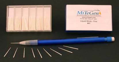 這種紙芯頭部很尖、吸液性能強(qiáng)大,遠(yuǎn)遠(yuǎn)超過海綿頭或者棉花頭的吸液類產(chǎn)品。一般提供四種規(guī)格15, extra fine (XF), fine (F), and Medium (M).15號紙芯與MicroMounts的吸液孔完美配合,可以干凈的吸取晶體上面多余的液體。Medium (M) and Fine (F)一般用于潔凈Mounts。