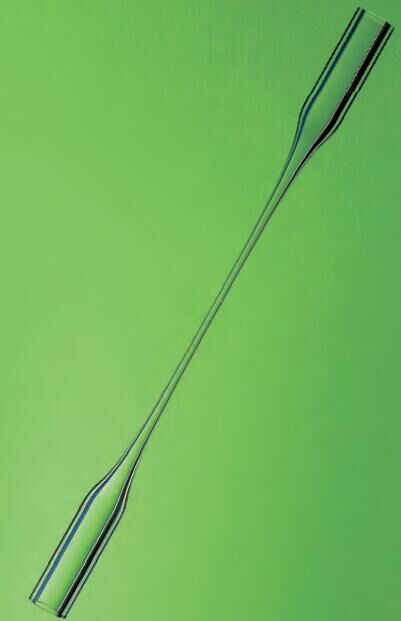 原產(chǎn)德國的雙漏斗薄壁玻璃毛細(xì)管,由硼硅玻璃制造(borosilicate glass 3.3),這些特殊的樣品管適合于流體測(cè)量。測(cè)量段在毛細(xì)管中部的壁厚僅為20μm左右,兩端壁較厚,便于安裝液體流動(dòng)通道。事實(shí)證明,薄連接軟管最適合這些毛細(xì)管(軟管推薦用軟聚四氟乙烯管)。