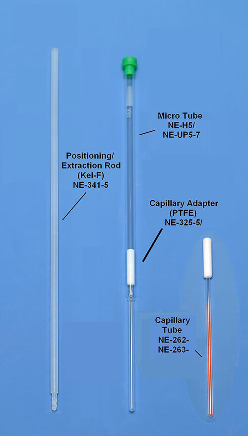 核磁管/毛細管套裝,包含一個核磁管(Micro NMR Sample Tube)、一個適配蓋子(one adapter)、一個拉取桿(one extraction rod)、5根毛細管capillaries。適于微量樣品15-115µl的測量。請參閱下表信息選擇最適合樣品體積和探針的核磁管和毛細管大小。樣品被放置在一次性毛細管中,對較小直徑樣品有著更好的分辨率。毛細管和管之間的殘余(環(huán)形)空間可以用其它材料填充,而不是直接將這些材料添加到樣品中。 這不僅使您的樣本盡可能集中,而且可用來1H,19F,2H測量。